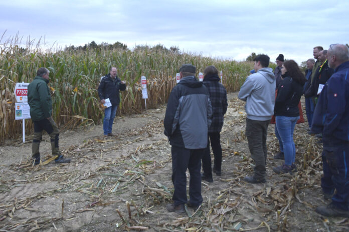 24 Personen aus 15 Betrieben der Umgebung waren gekommen, um sich von Robert Geffers von der Firma Pioneer und von Markus Kleinehakenkamp von der Deutschen Saatgut die einzelnen Sorten erklären zu lassen. Dabei ging es ausschließlich um „Futtermais“, der nicht für den menschlichen Verzehr vorgesehen ist, sondern für die Viehhaltung in der Milchwirtschaft oder die Biogasanlagen. Deshalb war auch von „Verdaulichkeit“ und „Stärkegehalt“ sowie „Reifebereich“ die Rede.