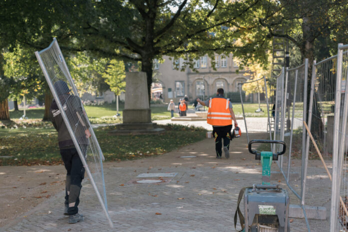 Detmold. Die Bauarbeiten auf dem Detmolder Schloßplatz schreiten voran. Seit dem heutigen Donnerstag, 2. Oktober, kann der direkte Weg vom Rosental über die Treppe zwischen der Stadthalle und „H&M“ in Richtung Marktplatz und Schloss wieder genutzt werden.
