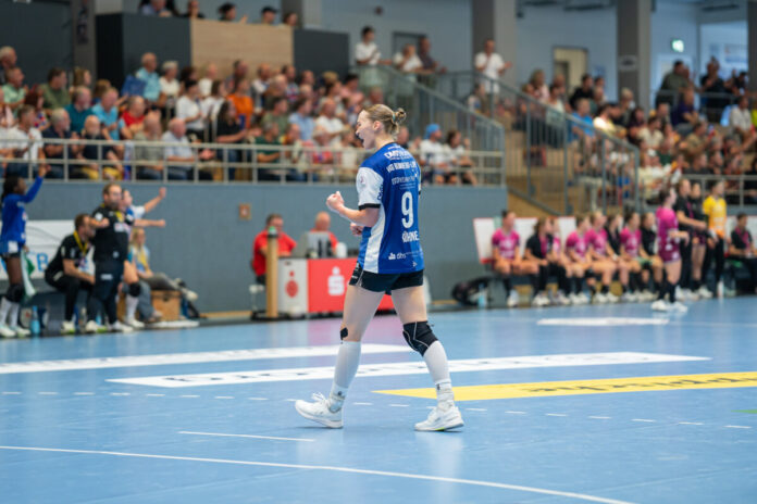 Kühne und die ehemalige Blombergerin Petersen lieferten sich zu Beginn ein Torduell, bei dem die HSG-Spielerin immer wieder konterte. Jacobsen traf beim 3:3 zum erneuten Ausgleich. Für die Isländerin rückte im HSG-Angriff Élin Magnúsdóttir ins Spiel, die direkt die Zeitstrafe gegen Hasselbusch herausholte.