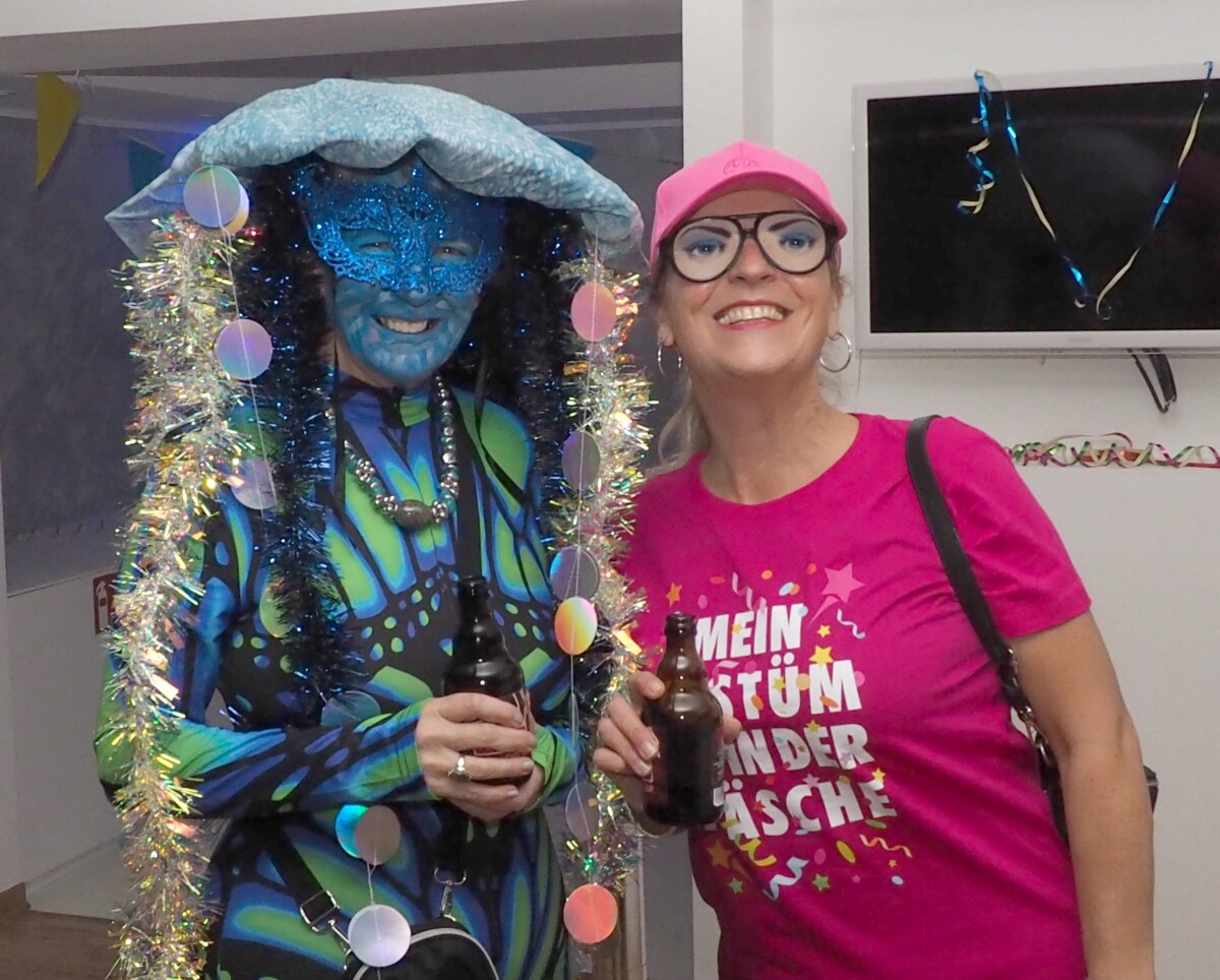 Zahlreiche Jecken waren der Einladung gefolgt und erschienen in farbenfrohen und fantasievollen Kostümen. Für die passende Stimmung sorgte DJ D-Rizon aus Bielefeld, der mit bekannten Hits die Tanzfläche füllte. Und so wurde bis in die tiefe Nacht ausgelassen gefeiert, getanzt und geplaudert.