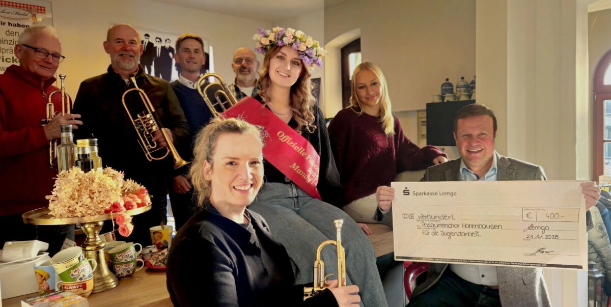 Lemgo. Gemeinsam überreichten Alexander Baer, Landtagsabgeordneter aus Lemgo, und Annette Diekmann, bekannt als „Pickert-Mädel“, unlängst eine Spende in Höhe von 400 Euro an den Posaunenchor Hohenhausen.