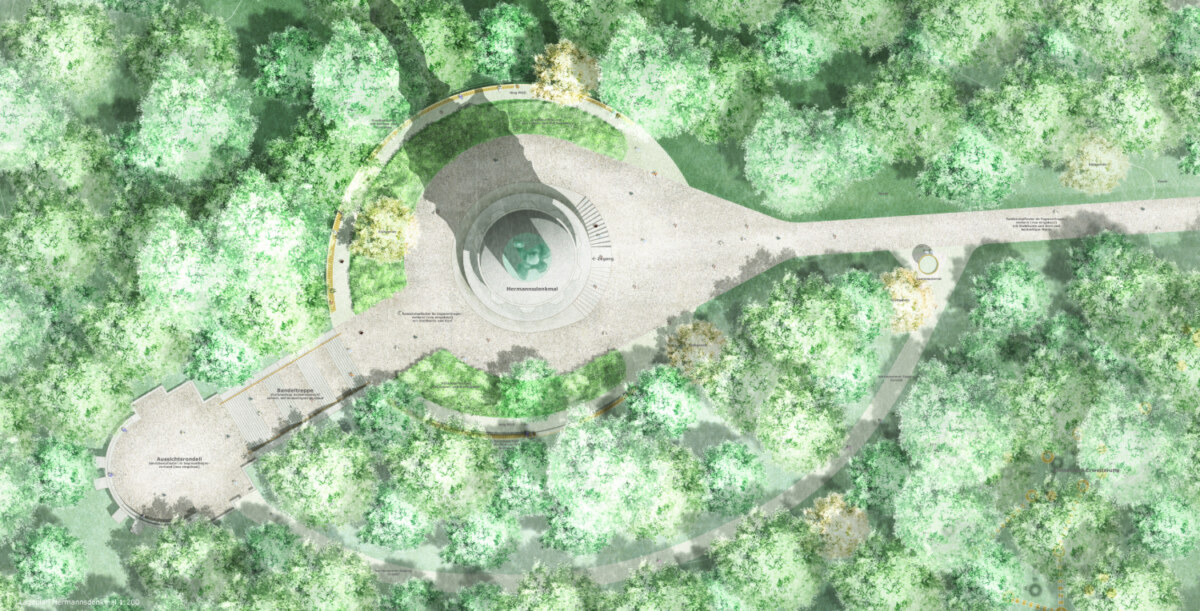 Der prämierte Entwurf überzeugte das Preisgericht durch sein Konzept, das darauf abzielt, das Areal in die „Erlebnislandschaft Hermannsdenkmal“ zu verwandeln. Die zentrale Leitidee sei es, das gesamte landschaftliche Areal harmonisch zu verbinden, um ein umfassendes Besuchererlebnis zu schaffen. Dabei werde nicht nur die Historie des Hermannsdenkmals beleuchtet, sondern es greife auch die gesamte Geschichte des Ortes auf.