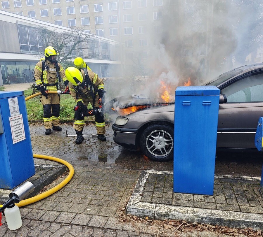 Beim Eintreffen habe der Motorraum eines Opel bereits in Flammen gestanden. Um den Brand zu bekämpfen, sei die Motorhaube mithilfe eines hydraulischen Spreizers geöffnet worden. Anschließend hätten die Feuerwehrleute das Feuer mit Wasser und Schaummittel gelöscht.
