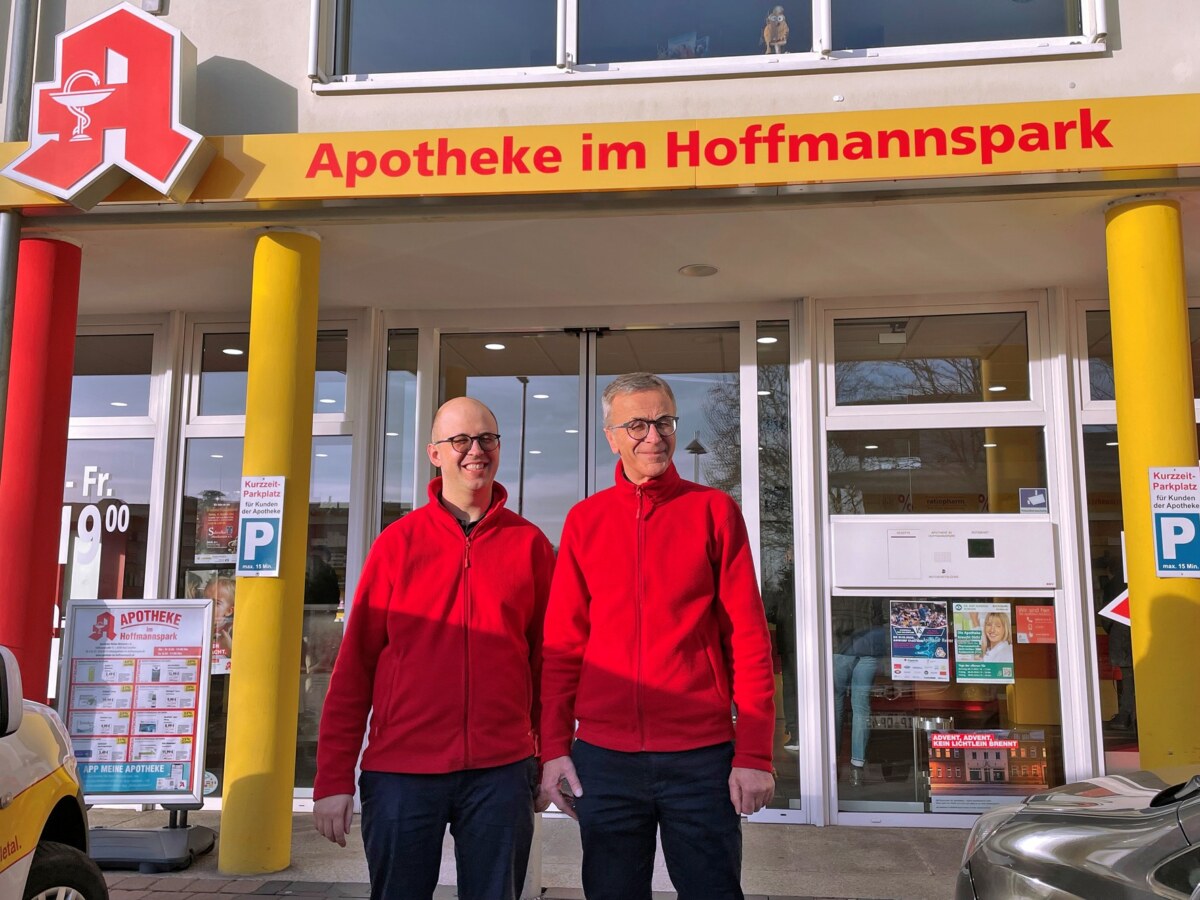 Christoph Meinecke (42) hat am 2. Januar die Apotheke im Hoffmannspark von seinem Vater Heiner Meinecke (67) übernommen. Foto: Reiner Toppmöller