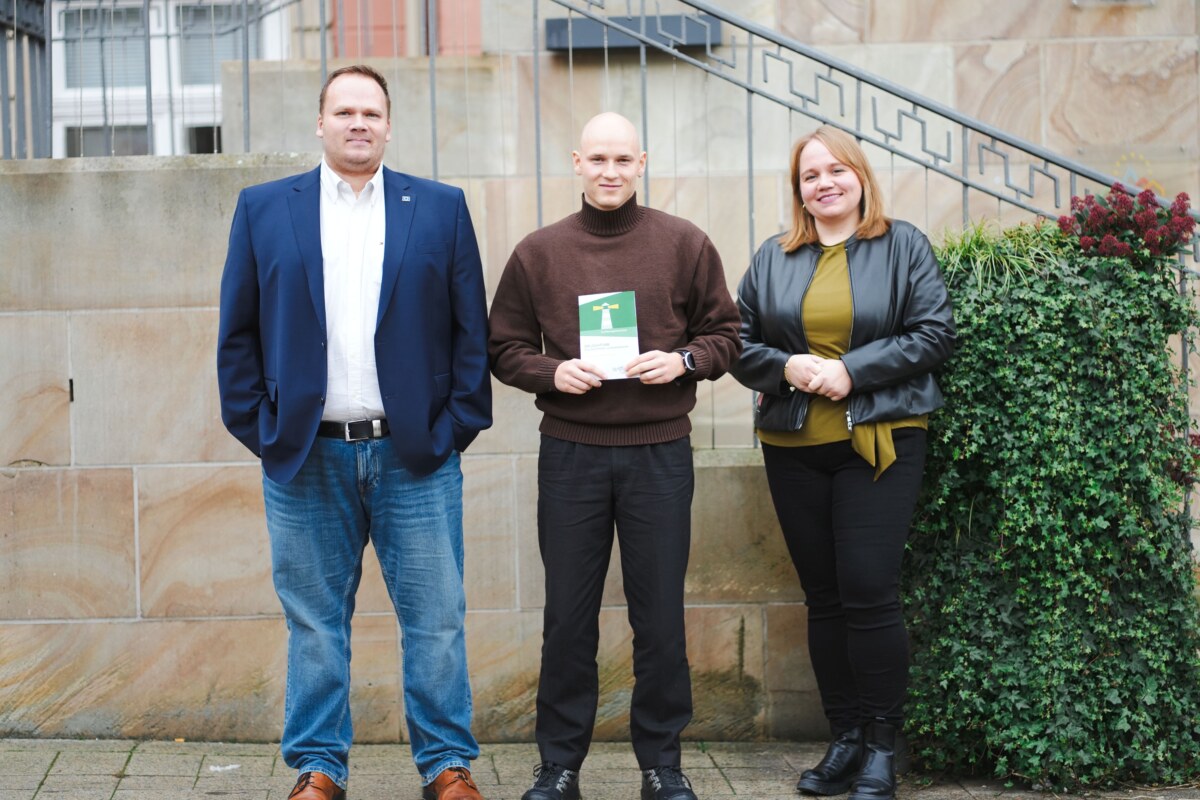 Aufschlussreicher Austausch mit nachhaltiger Wirkung: (von links) Michael Peuker (Leiter des kommunalen Krisenstabes bei der Stadt Detmold), Fynn Spilling von der Akkon Hochschule in Berlin und Christine Schiemann, die im Rahmen ihres Studiums aktuell ein Kommunalpraktikum bei der Stadt Detmold absolviert und sich mit dem Thema Katastrophenschutz befasst. Foto: Stadt Detmold