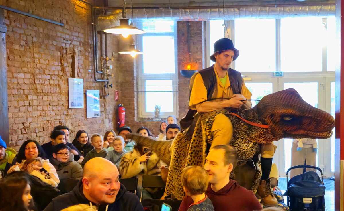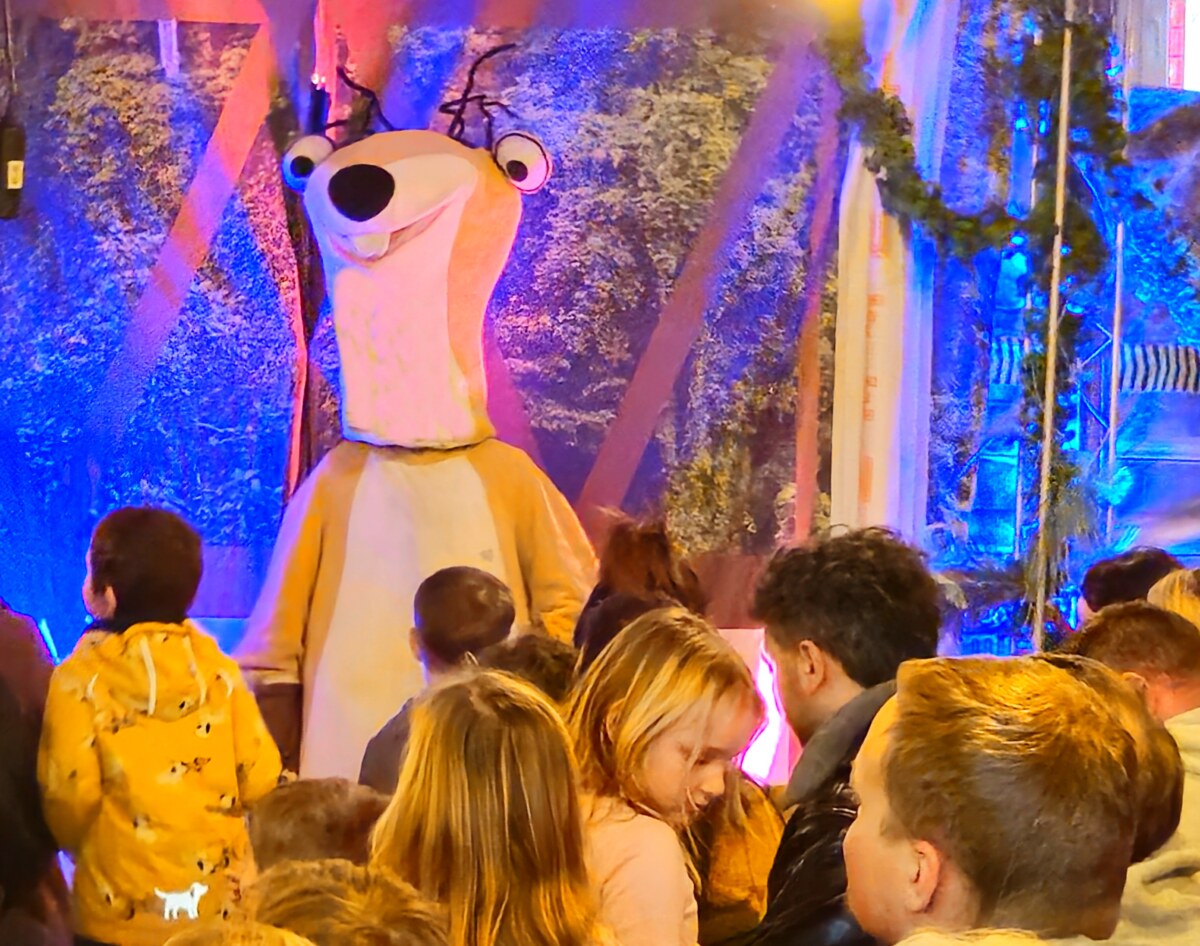 Ein besonderer Höhepunkt war die lebensgroße T‑Rex‑Mama, die ihr Dino-Ei suchte und mit ihrer gewaltigen Statur kaum in die Halle passte. Zwischendurch sorgte „Sid“, das bekannte Faultier aus der „Ice Age“-Filmreihe, für zusätzliche Unterhaltung. Die Figur, im Film von Otto Waalkes gesprochen, animierte das Publikum zum Klatschen, Mitmachen und, soweit der enge Raum es zuließ, auch zum Tanzen.