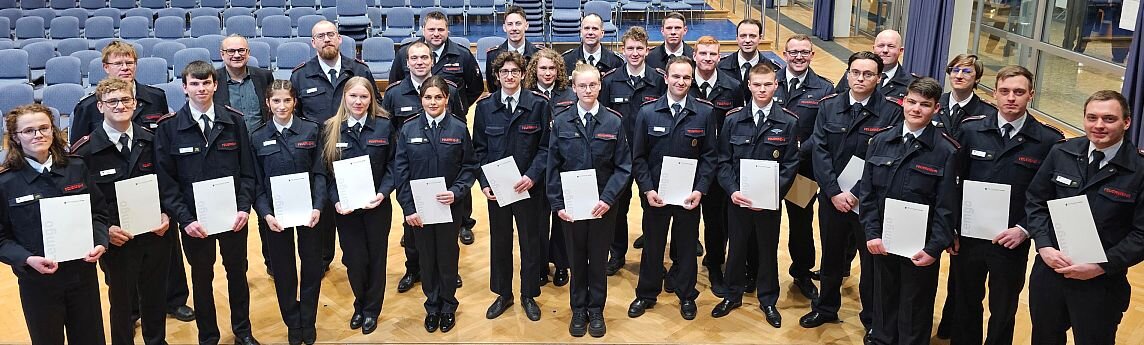 Bereits im Januar waren 25 Kameradinnen und Kameraden für ihre langjährige Treue und außergewöhnlichen Leistungen geehrt worden. Bei der Generalversammlung konnten nun 31 Einsatzkräfte als allen Einheiten der Lemgoer Feuerwehr befördert werden.