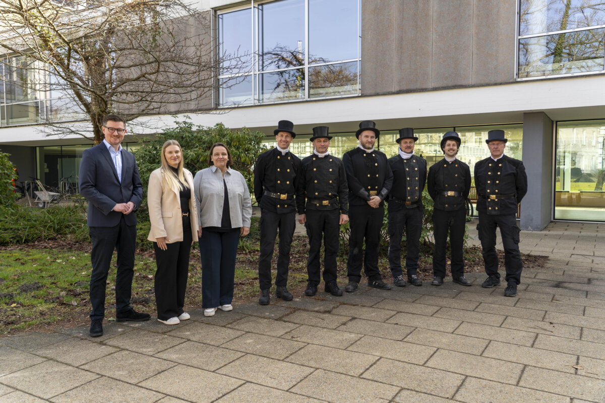 Im Rahmen einer Feierstunde gratulierte Tim Wagner, zuständiger Dezernent bei der Bezirksregierung, den Hoheitsträgern zur Übernahme ihres Kehrbezirks. Als Vertreter der Schornsteinfegerinnung nahm der stellvertretende Obermeister Rainer Wulfmeier teil, als Altgeselle gratulierte Fynn Krämer den bevollmächtigten Bezirksschornsteinfegern.