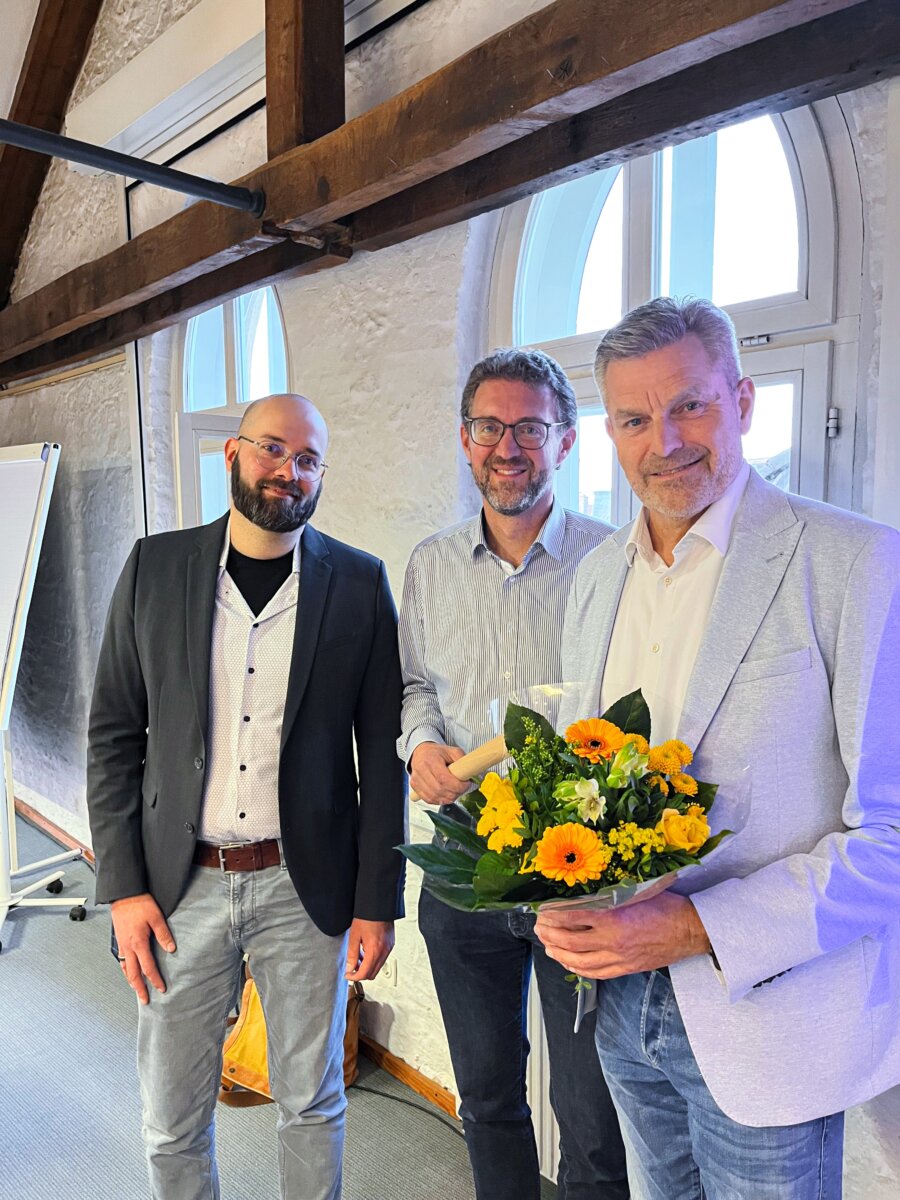 Wechsel an der Stadtwerke-Spitze: Michael Benneker (links, Geschäftsführer Stadtwerke Oerlinghausen), Stephan Heidbrink (Mitte, Vertretung für den ehemaligen Aufsichtsratsvorsitzenden) und Dirk Becker (rechts, neuer Aufsichtsratsvorsitzender Stadtwerke Oerlinghausen), Foto: Stadtwerke Oerlinghausen