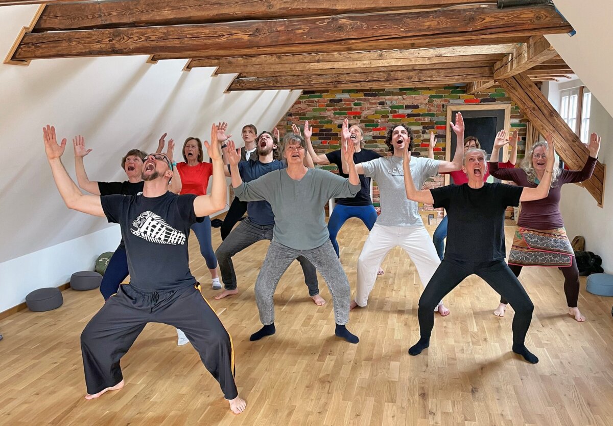 Im zweiten Teil seines zweitägigen Angebotes in Lippe gab es einen Haka-Workshop zum Mitmachen. Der Haka ist ein kraftvoller ritueller Tanz der Maori aus Neuseeland, der Körper, Stimme und Geist verbindet.