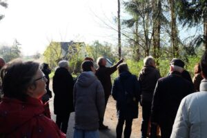 Da! Da war es wieder. „Twiht-twiht …“, dieser laute, pfeifende Ruf. Was mag das sein? „Ein Kleiber“, klärt Dr. Dr. Markus Jacobs auf. Gerade noch mit dem bloßen Auge zu erkennen, können die „Spaziergänger“ zudem beobachten, wie der kleine blau-grau-orange Geselle etwas schafft, was ihm kein anderer Vogel nachmachen kann: kopfüber einen Baumstamm hinabzuklettern.