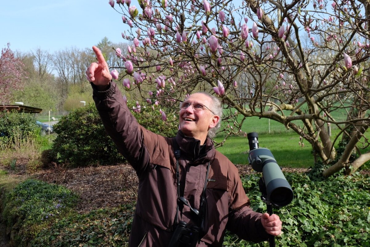 „Dieser Vormittag dient zu mehr als dem Auffinden von Vögeln und dem Abhaken einer größtmöglichen Menge von Namen. Es ist ein Zustand der Wachsamkeit und des Eintauchens in die Schönheiten der Schöpfung Gottes“, erläutert der Theologe, der sich in mehr als 30 Jahren ein umfangreiches ornithologisches Wissen angeeignet hat, das er erfrischend bodenständig und ohne „Elfenbeinturm-Attitüde“ lebendig zu vermitteln weiß. Langsames Gehen, häufiges Stehenbleiben und ruhiges Beobachten. Lauschen.