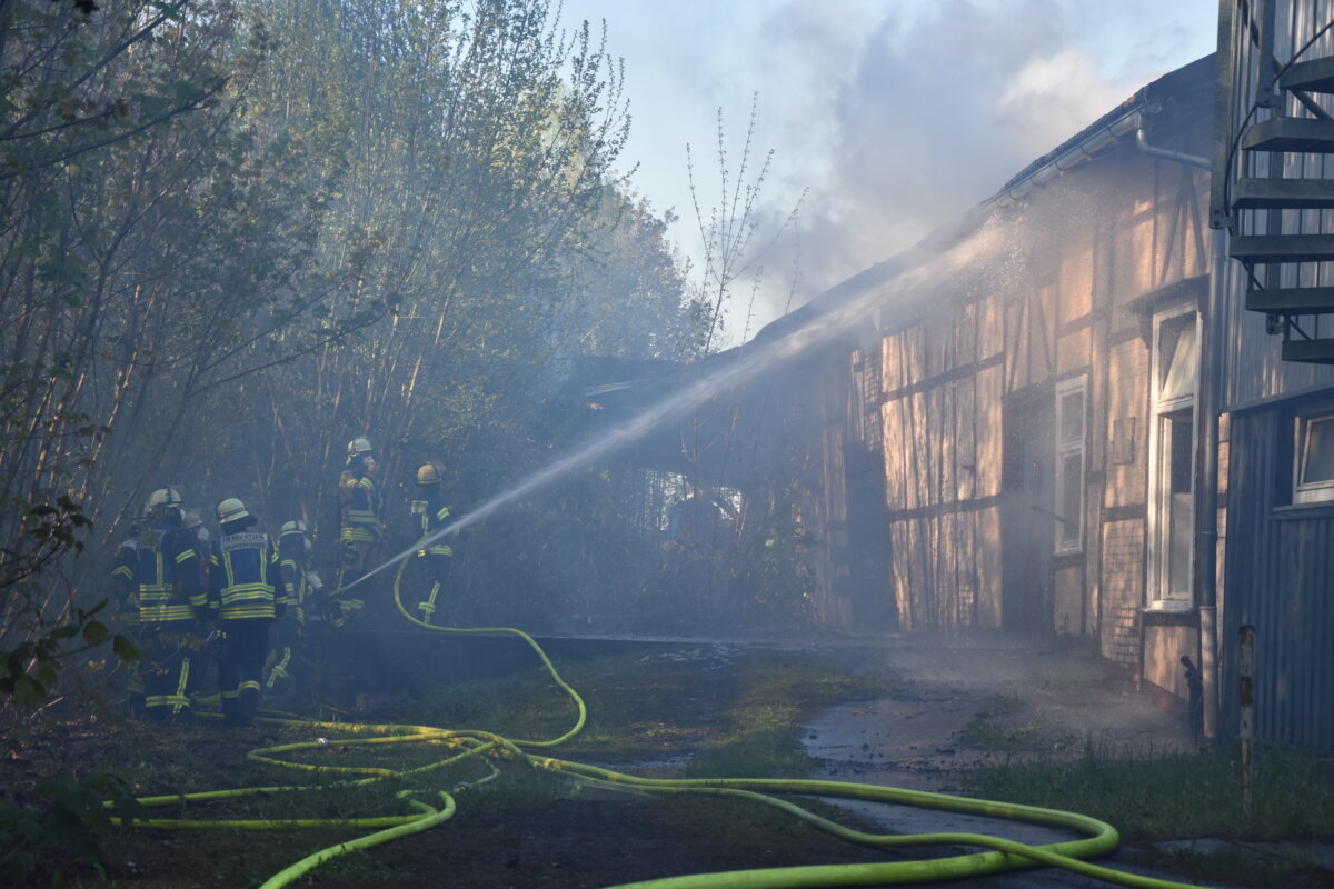Der Brand war am Mittwoch, 22. April, in der Straße Bahnhof gegen 16 Uhr entdeckt worden. Nach Angaben der Polizei hätten sich zum Zeitpunkt des Feuers keine Personen in dem Gebäude aufgehalten. Die Feuerwehr sei mit einem Großeinsatz vor Ort gewesen, habe jedoch nicht verhindern können, dass die Obdachlosenunterkunft weitgehend zerstört wurde. Auch ein angrenzendes Nachbargebäude sei durch das Feuer beschädigt worden.