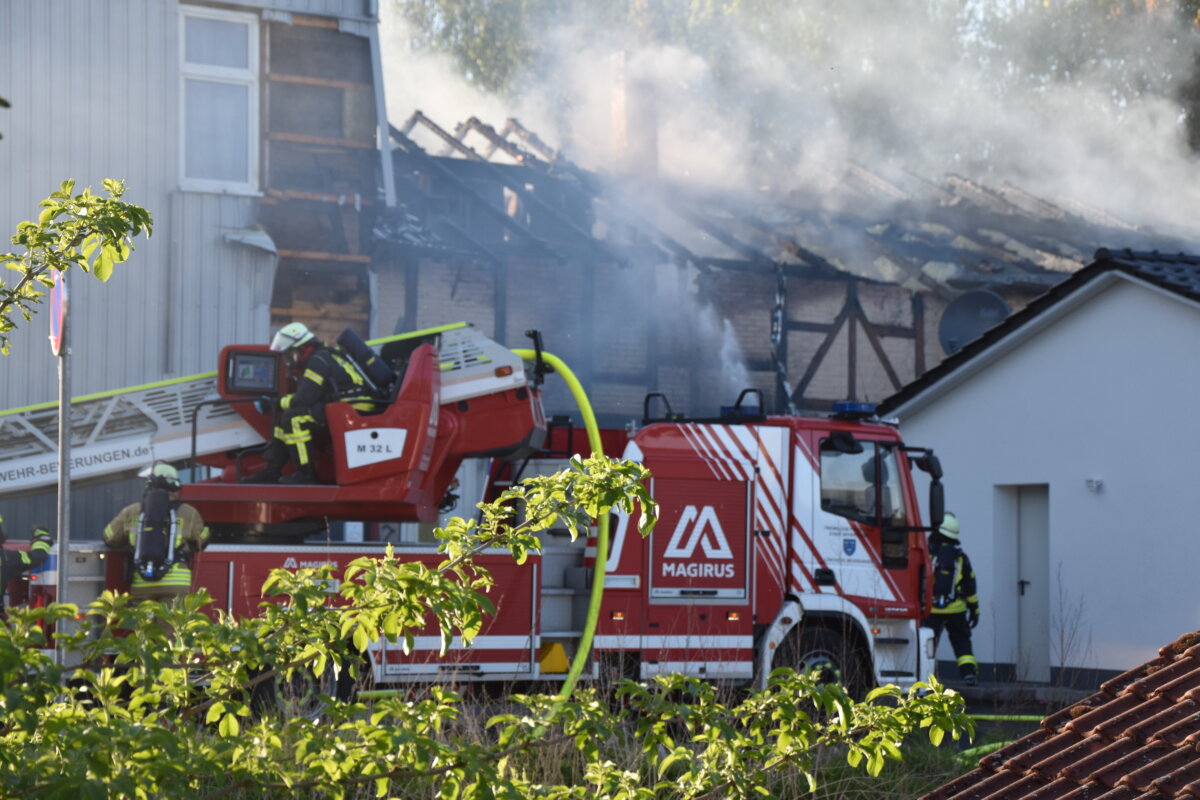 Im Verlauf der Löscharbeiten seien in der Nacht weitere Maßnahmen erforderlich geworden. Demnach hätten Teile des Gebäudes eingerissen werden müssen, um verbliebene Glutnester endgültig ablöschen zu können. Die Höhe des entstandenen Sachschadens beziffert die Polizei auf einen hohen fünfstelligen Betrag.